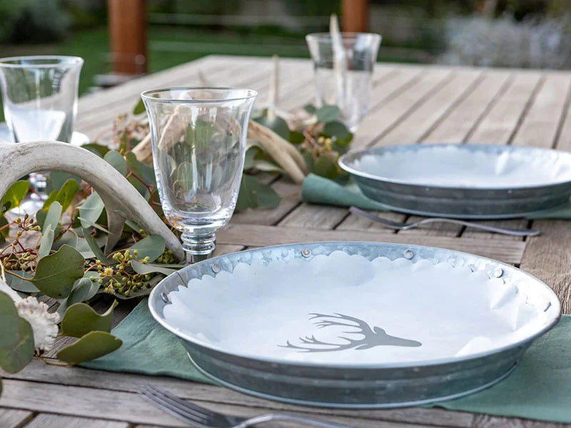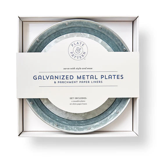 Galvanized metal is appreciated for its rustic, industrial character as well as its durability. These metal plates look great in homes of all styles because of their ability to provide a neutral palette on which to layer other colors and match any table décor.