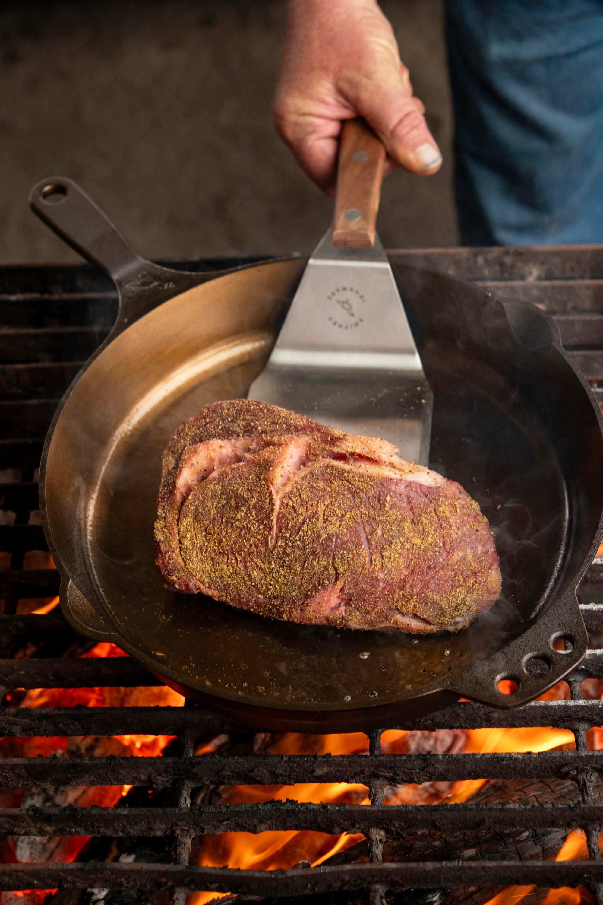 This thoughtfully crafted spatula is perfect for smashing burgers and so much more, from flipping French toast to cutting and serving cakes or casseroles. The large metal surface and sharp chiseled edges are designed to easily slide under even the most delicate foods.