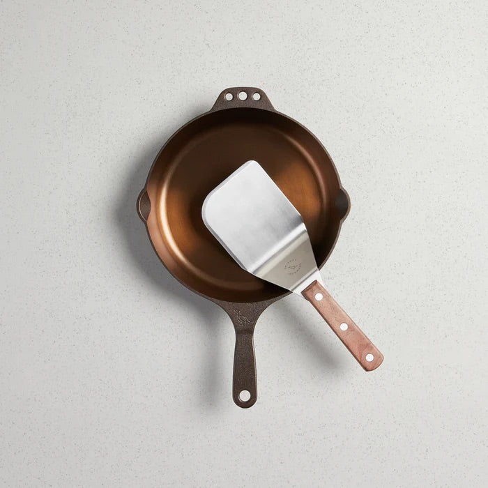 These spatulas are custom fit so that the neck and edges line up perfectly with the sides of your skillet, to reach every nook and cranny. Features full tang handle with varied sharp edge design, a durable stainless-steel blade, and optimal blade thickness with extra deep neck to fit skillet.