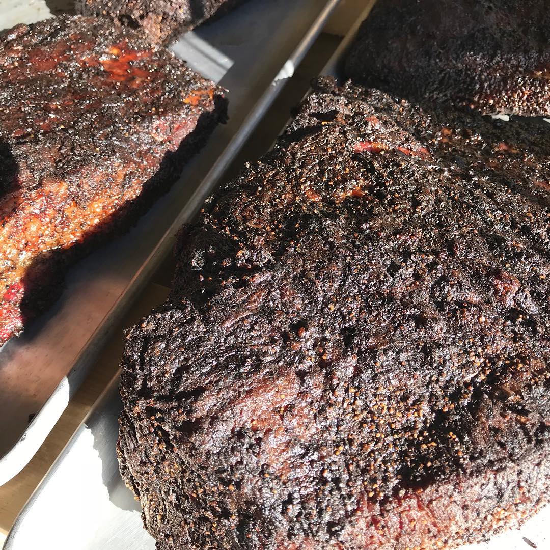 Ingredients: Beef Brisket, Seasoned With Black Pepper, Sea Salt, Spices, Dehydrated Garlic and Onion, Natural Flavors, Sugar and No More Than 2% Soybean Oil to Aid in Flavoring. Mopped with Beef Tallow, White Vinegar, Water, Onion and Lemon.