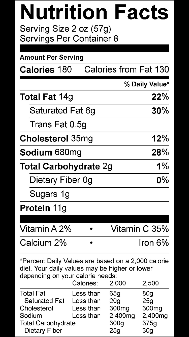 Ingredients: Beef, Green Chile, Water, Seasoning (Corn Syrup Solids, Salt, Spices) Cure (Salt, Brown and Cane Sugar, Sodium Nitrite) Black Pepper