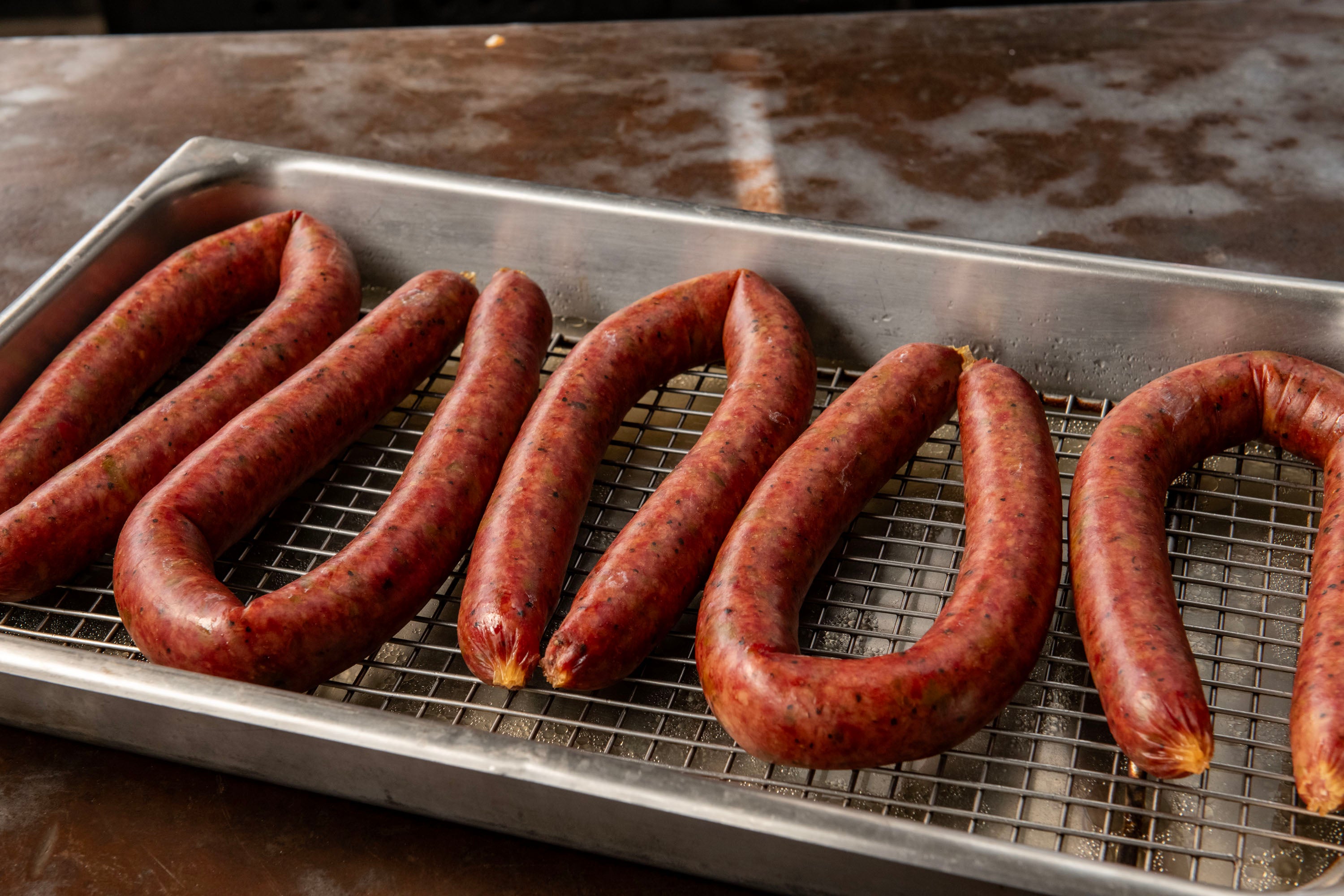 Introducing our newest favorite: Smoked Beef Sausage with Green Chile. Our sausage is crafted from 100% premium beef brisket and mesquite smoked to mouthwatering perfection.